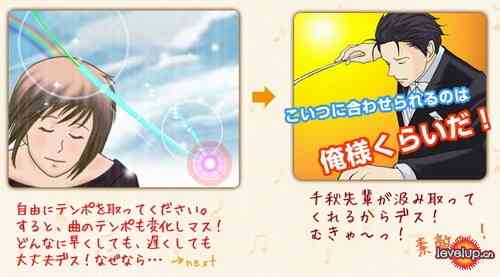 來看應該是根據千秋的指揮的節奏在恰當的時候按下按鍵來進行遊戲,遊戲同時保留了
